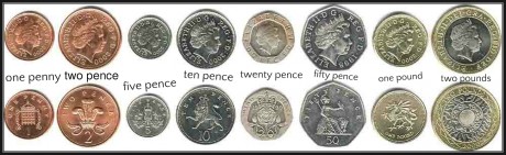 Na moeda britânica [British currency] também existem nomes específicos para cada moeda.