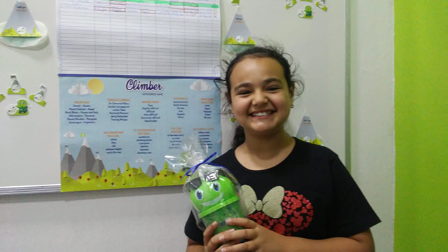 No último Categories Game do ano, a aluna Renata Laube, do curso Kids, fez a maior pontuação e garantiu o seu Fluxie Cup. A felicidade da aluna era evidente pois além do prêmio ela aprendeu e relembrou vocabulário, expressões e chunks em inglês.