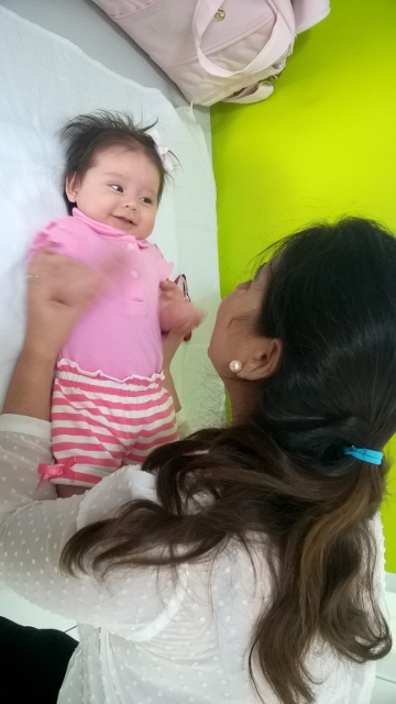 Sofia, com apenas 3 meses de idade, já causou um alvoroço total ao chegar aqui. Quem estava presente ficou feliz e empolgado para segurá-la. Na verdade, todos estamos bem ansiosos para que ela comece a andar, brincar e aprontar na companhia dos professores e colaboradores da escola.
