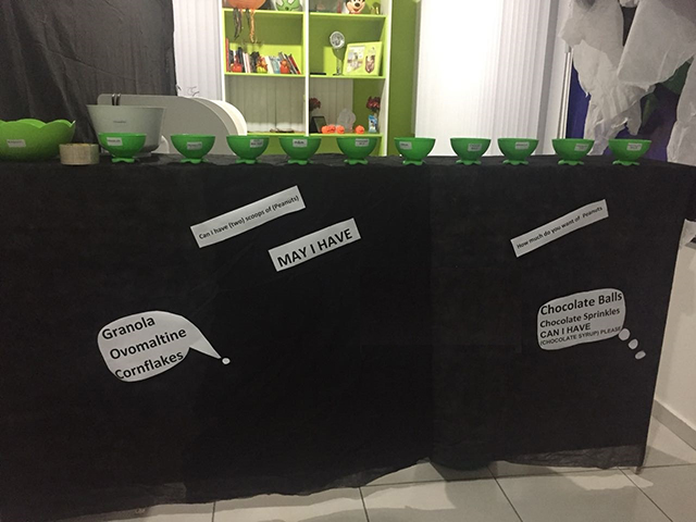 Nossos pequenos aprenderam expressões e o nome de cada item utilizado nos tradicionais açaís.