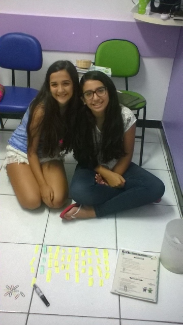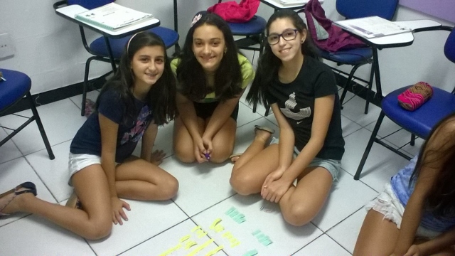 Os alunos tiveram que formar as frases e assim que eram encaixadas, os teenagers tinham que traduzir do português para o inglês! Os alunos se divertiram horrores e deram gargalhadas que soavam por todas as partes.