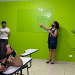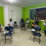 Alunos da inFlux Fazenda Rio Grande praticam inglês através de situações do cotidiano de um escritório.