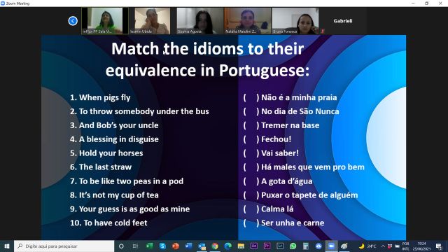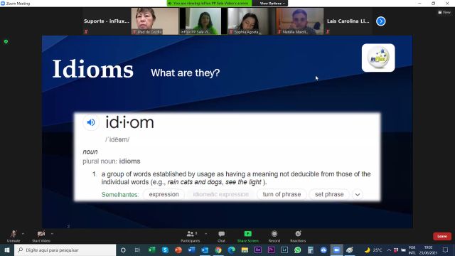 Conhecer expressões idiomáticas pode fazer muita diferença no momento de se comunicar numa língua estrangeira. Com o intuito de expandir o conhecimento sobre esse tipo de vocabulário, na sexta-feira, 28 de junho, a inFlux Prudente realizou a atividade “What does it mean?”. Durante a atividade os alunos puderam ver algumas curiosidades como a história por trás de algumas dessas expressões e realizar atividades colocando o que aprenderam em prática.