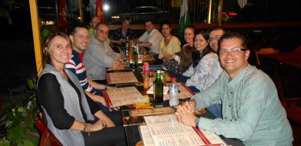 Mais uma edição da atividade extra “Salir de Copas” aconteceu no dia 07/10. Os alunos foram convidados a ir a um restaurante para praticar o idioma, jogar conversa fora e se divertir, tudo em espanhol. Com ajuda das maestras, os participantes interagiram em espanhol durante a noite toda. A maestra Dulce deixou um recado: “Parabenizo a coordenação da inFlux Joinville que sempre está nos possibilitando a prática da língua que aprendemos em sala de aula. Desta vez, estivemos saliendo de copas e não poderia ser melhor. Nos enturmamos e nos aventuramos na fala espanhola sem medo, trocando ideias, informações e boas risadas. Que venham novos encontros descontraídos e agregadores. Parabéns inFlux, parabéns alunos de espanhol. Vocês estavam maravilhosos!