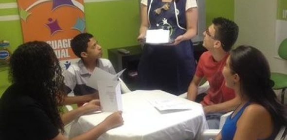 Na aula do Book 1, Lesson 5, encenamos uma situação na qual os alunos realmente se sentiram em um restaurante no exterior.