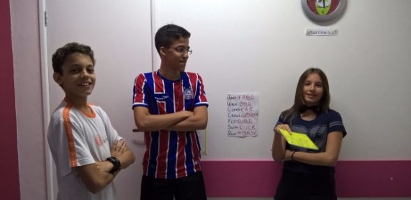 A Teacher Taísa deu a aula de uma maneira bem bacana e os alunos concordaram em fazer a dinâmica. Eles ficaram muito animados e seguros por terem aprendido o assunto da aula, além de praticarem o inglês de uma maneira descontraída.