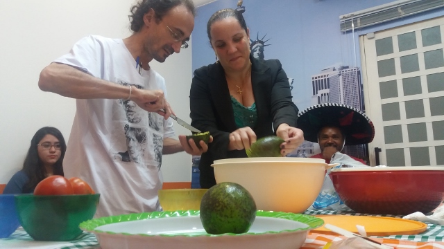 Aprenderam e fizeram um Guacamole acompanhado de um saboroso Chili praticando muito espanhol.