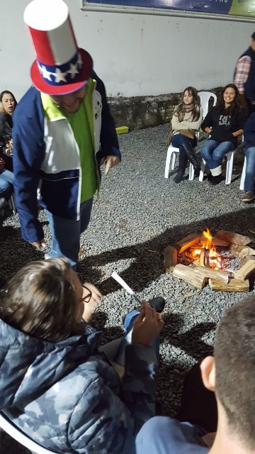A última atividade extra fechou com grande estilo o semestre! Nossos alunos foram convidados para uma noite de atividades e brincadeiras para descontrair e aprender inglês, em 09/06. Estava uma noite muito fria, mas a fogueira e a animação conseguiram garantir um clima muito agradável para todos que participaram do Around the Fire. Ao final da atividade, todos puderam saborear um delicioso marshmallow e ainda fazer alguns s’mores fantásticos. Segundo a aluna Poliana Dalpra, ela e sua amiga amaram muito a atividade. Disse ainda: “Se tiver toda semana, com certeza estarei aqui.
