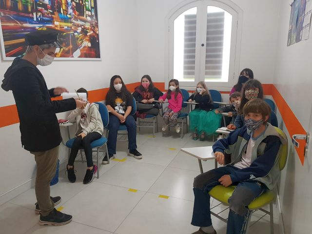 E criatividade não faltou nessas crianças! Utilizaram os seus conhecimentos do idioma para entrevistar os suspeitos e desvendar pistas, reunindo todas as informações necessárias para encontrar o responsável pelo crime, além de aprender novos chunks em inglês, aumentando ainda mais seu vocabulário.