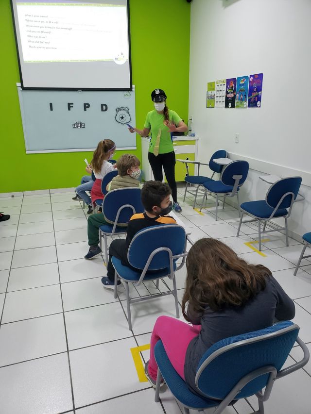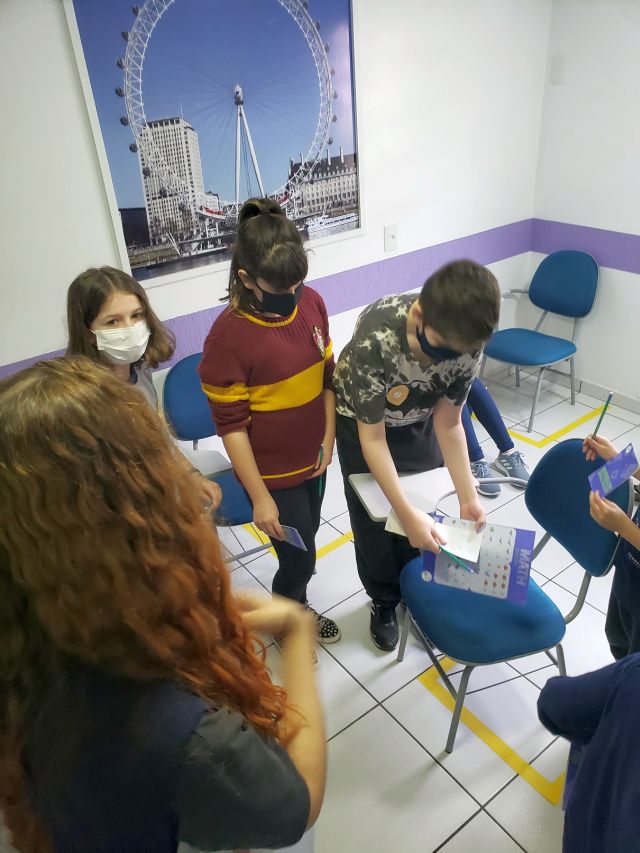 E criatividade não faltou nessas crianças! Utilizaram os seus conhecimentos do idioma para entrevistar os suspeitos e desvendar pistas, reunindo todas as informações necessárias para encontrar o responsável pelo crime, além de aprender novos chunks em inglês, aumentando ainda mais seu vocabulário.