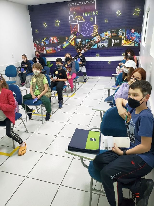 A atividade extra do mês de outubro foi recheada de mistérios e investigação. No dia 15/10, os alunos da inFlux Joinville Centro Kids e Juniors tiveram que trabalhar juntos, como detetives, para ajudar o Fluxie a desvendar um grande enigma no Halloween: Crime Investigation.