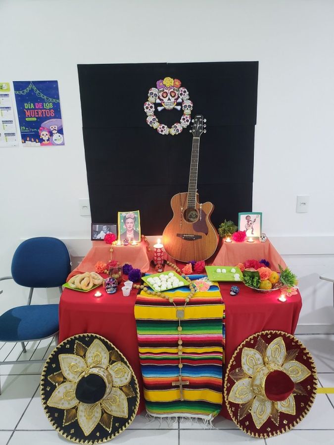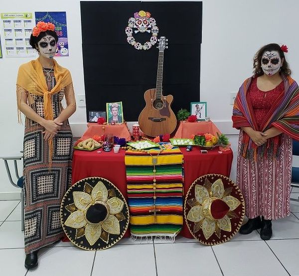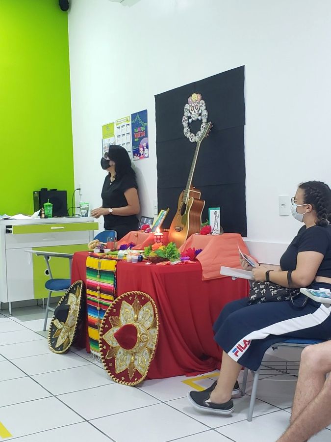 E foi isso que os alunos do curso de espanhol puderam desfrutar no último dia 29 de outubro. Com elementos típicos do Día de Los Muertos, como “El altar“, “pan de muerto” e “las cavaleritas de azúcar“, os alunos puderam aprender um pouco mais sobre as diferenças desta celebração comparadas ao Halloween e outras práticas mundo afora.