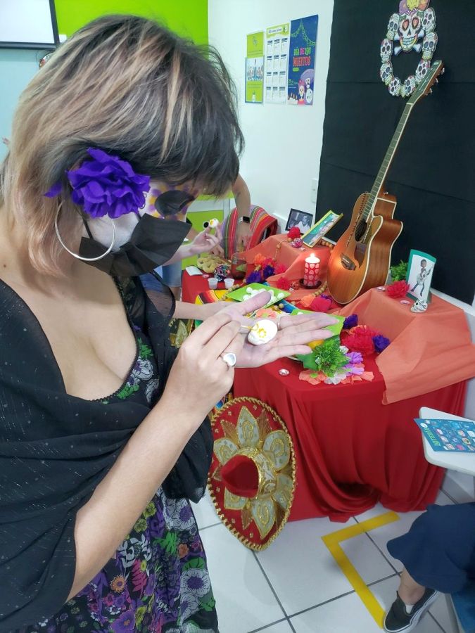 Além disso, fizeram suas próprias caveirinhas de açúcar, jogaram Lotería (uma espécie de bingo mexicano) e aprenderam novas expressões para usar em espanhol enriquecendo seu vocabulário de uma forma super divertida!