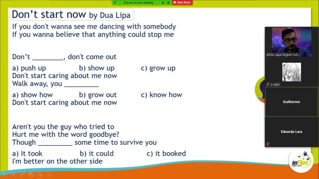 Na sexta-feira, 28 de maio, foi a vez dos alunos do curso regular na inFlux Lapa participarem do Music Session. Durante a atividade os estudantes se divertiram muito falando em inglês sobre as novas tendencias da música assim como os clássicos. Também foi testado o conhecimento de todos sobre o tema, e praticaram o listening. Veja as fotos da atividade extra!