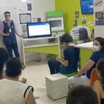 A atividade começou com um quiz superdivertido, onde os alunos tiveram que se dividir em grupos pequenos e quem acertasse um maior número de respostas, ganharia o game! Também foi testado o conhecimento dos students pra ver o quanto conhecem sobre movies, praticando o inglês e aprendendo novos chunks, claro, com muita diversão!