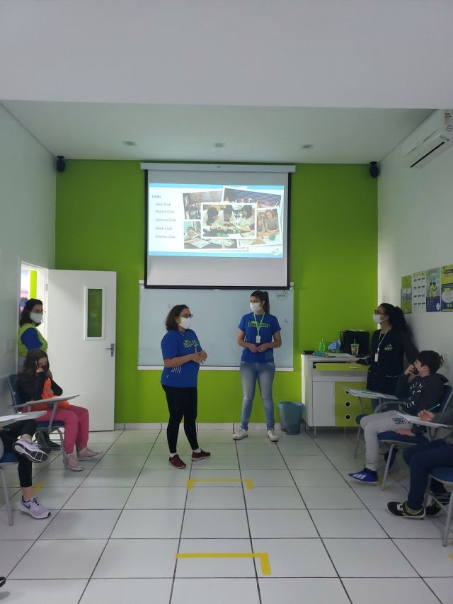 Além disso, cada participante pode escolher um clube para participar e replicar suas atividades características, como fazer um jornal da escola, desvendar problemas matemáticos e até apresentar uma peça de teatro – tudo isso em inglês! Demais, né?!