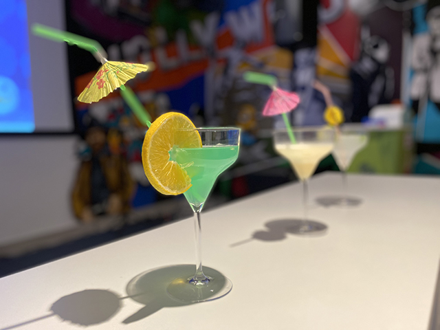 Através de ingredientes pré-selecionados, 3 grupos precisaram desenvolver um coquetel com nome, receita e história. Muita criatividade e imaginação foram usadas e renderam boas risadas! Após essa primeira dinâmica os conhecimentos musicais também foram testados através do “What’s the song?“, com sucessos dos anos 80, 90 e 2000.