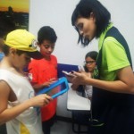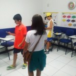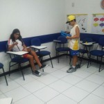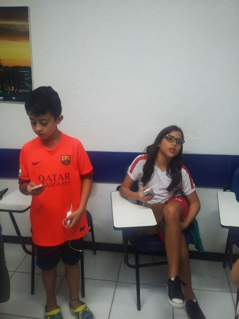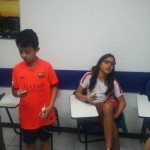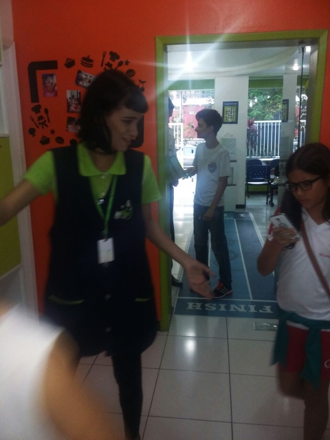 Quando o grupo de caçadores já estava pronto para caçar falando em inglês, a teacher Belle abriu a porta e todos saíram prontamente para iniciar o jogo. Pessoas aqui e lá, no jardim, nas salas e até na copa da escola, conseguiram caçar muitos monstrinhos bonitinhos. Foi muito divertido!