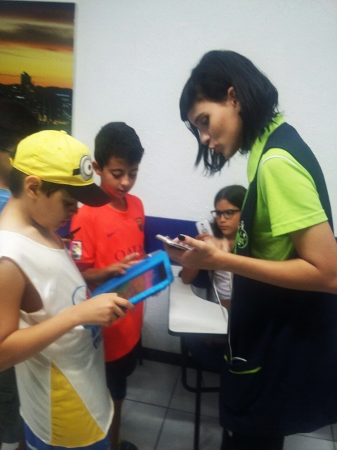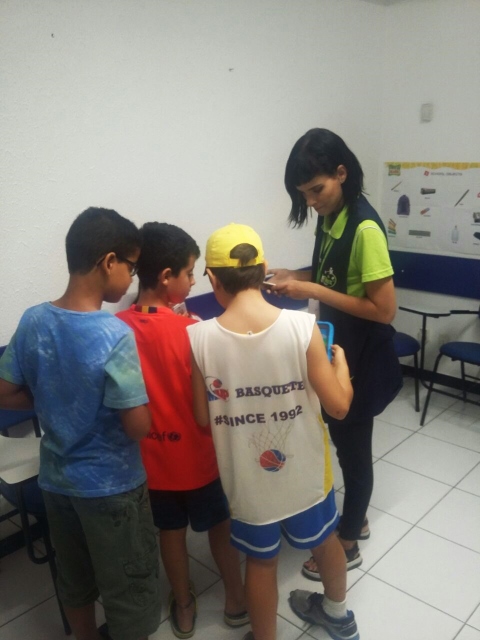 Convocamos todos os nossos alunos para caçar alguns monstrinhos dentro da escola. A professora Belle foi a encarregada de comandar a caça. A atividade começou da seguinte maneira: A teacher apresentou o vocabulário referente ao jogo, os nomes dos monstrinhos, as regras e todas as novidades deste jogo que está na moda, em inglês.