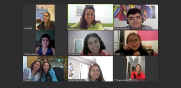Já os alunos teens e adults tiveram a atividade sobre Famous People. As duas equipes: Blind Spot e Famous Ocelot se desafiaram para ver quem acertava mais os desafios propostos sobre as celebridades! Confira algumas fotos destas atividades!