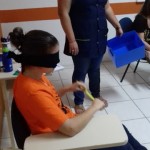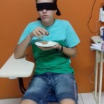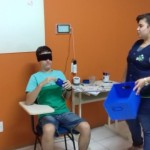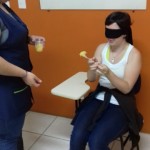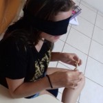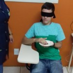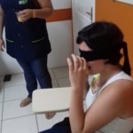 Com os olhos vendados, os alunos experimentaram comidas e bebidas, sentiram aromas, e tocaram objetos com o intuito de marcarem pontos para seus times.