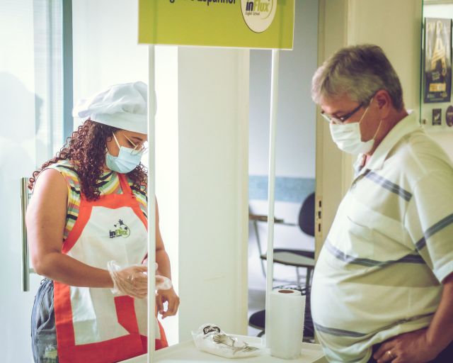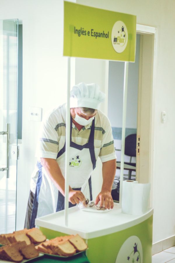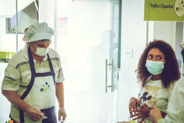 A unidade montou um “restaurante” para que os alunos simulassem um pedido. Enquanto um aluno era o cliente, o outro era o atendente.