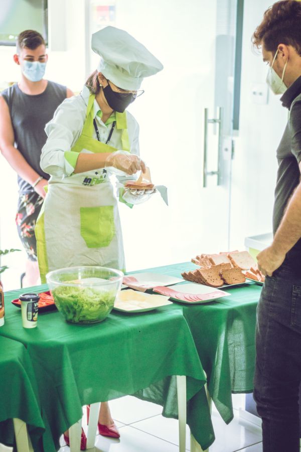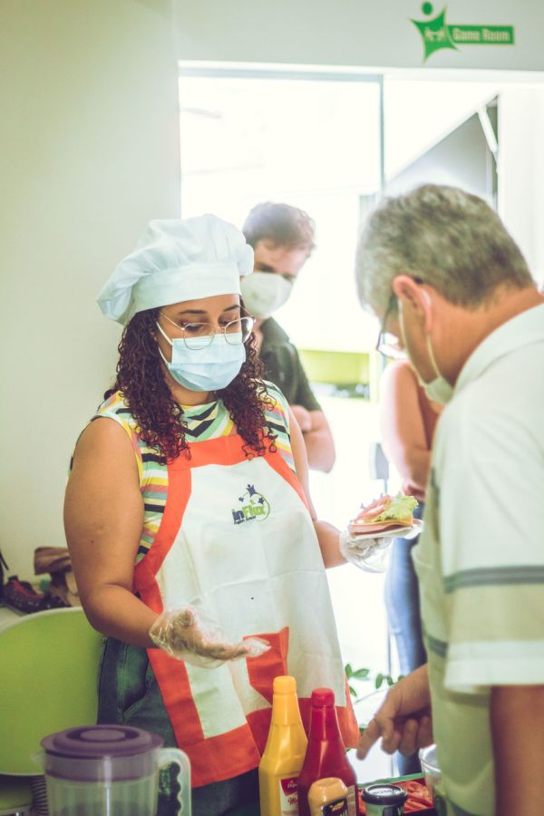 Os alunos montaram seus próprios sanduiches, escolhendo o tipo do pão, do queijo, da salada, do molho e do acompanhamento.