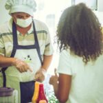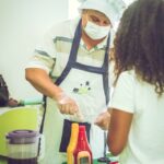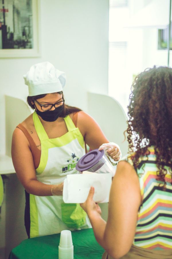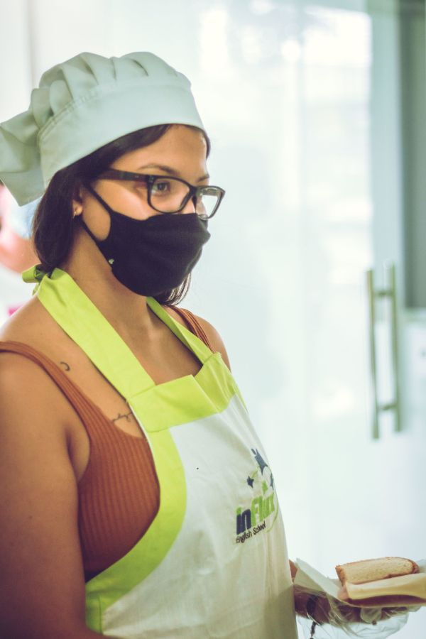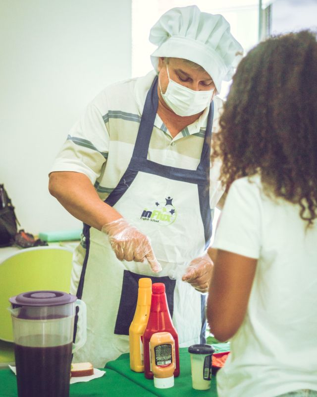 Os alunos relembraram vocabulários e expressões de como fazer um pedido no restaurante. Na sequência, eles puderam vivenciar na prática essa experiência.