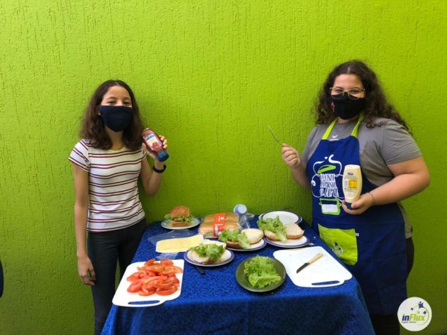 Nestas aulas, o estudante coloca em prática o que aprendeu em sala de aula, mas também aprende novos chunks, expressões e vocabulário relacionado ao tema da aula. Os alunos se divertem muito com a experiência. Confira algumas fotos de uma aula comunicativa onde os alunos prepararam deliciosos hamburguers!