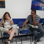 Na aula do Stage One, no dia 22/04, os alunos tiveram que fazer uma atividade para conseguir hospedagem num hotel. Foi muito divertido, pois tiveram que “se virar” com a expressões que já haviam estudado com a teacher Taísa.