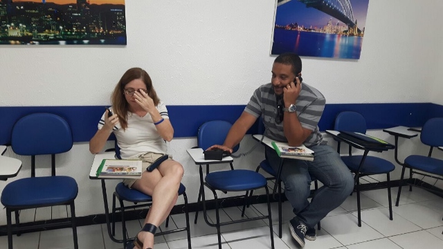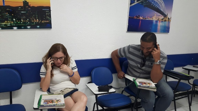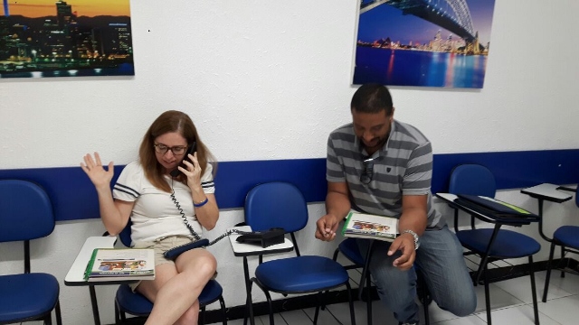 Na aula do Stage One, no dia 22/04, os alunos tiveram que fazer uma atividade para conseguir hospedagem num hotel. Foi muito divertido, pois tiveram que “se virar” com a expressões que já haviam estudado com a teacher Taísa.