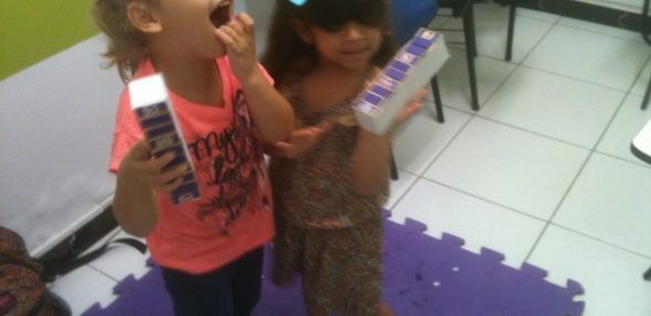 A teacher dava uma ordem, por exemplo: “open de window” e as meninas “abriam as portas “ empurrando a tampinha da caixa de fósforos. Teacher Denise aproveitou a aula para ensinar muito mais vocabulário sobre community “building”. Parabéns à teacher Deni e às alunas! Curtam nossas fotos e see you!