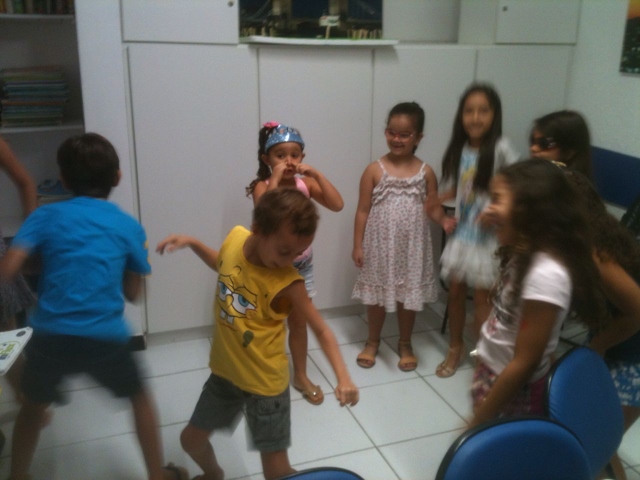 Eles primeiro estudaram a música, repetiram expressões e posteriormente cantaram. Foi tanta a empolgação que eles mesmos criaram uma coreografia.