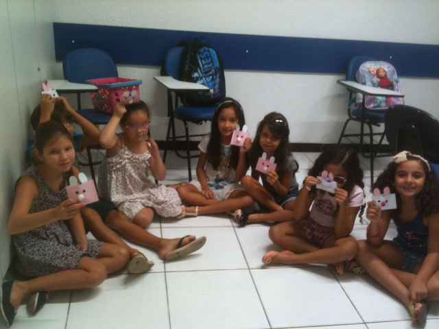 A páscoa está prestes a chegar. Por isso, teacher Denise trouxe umas lembrancinhas para seus lindos alunos! Logo após, os alunos a surpreenderam fazendo a dança do Bunny!