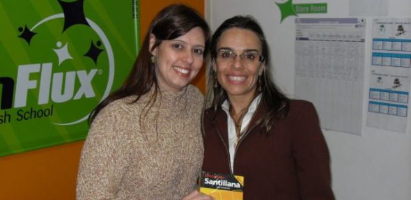 O prêmio era um dicionário e a ganhadora foi nossa aluna Tatiana Virmond que fazia o Libro 2 de Espanhol.