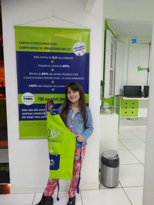 Foi revelada a vencedora do Categories Game na inFlux Lapa, a Elena Vitória Ramos Sampaio, que levou para casa esse belo avental da inFlux. Ótimo para usar na Cooking Class, não acha Elena?
