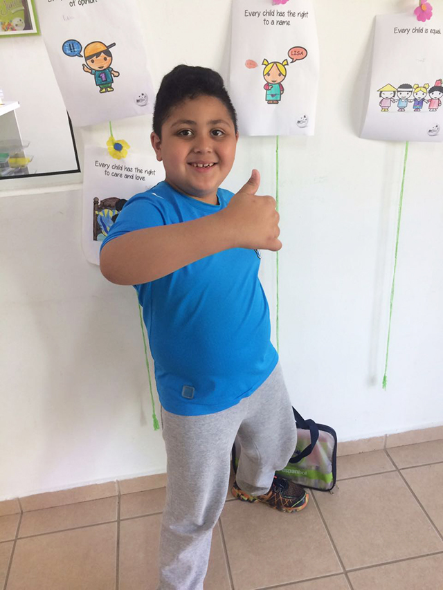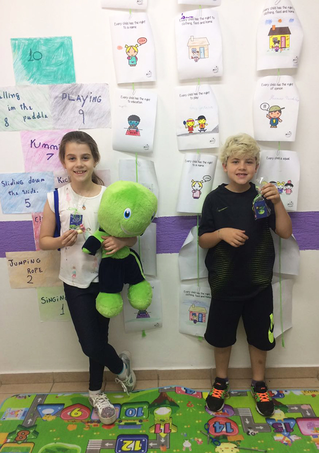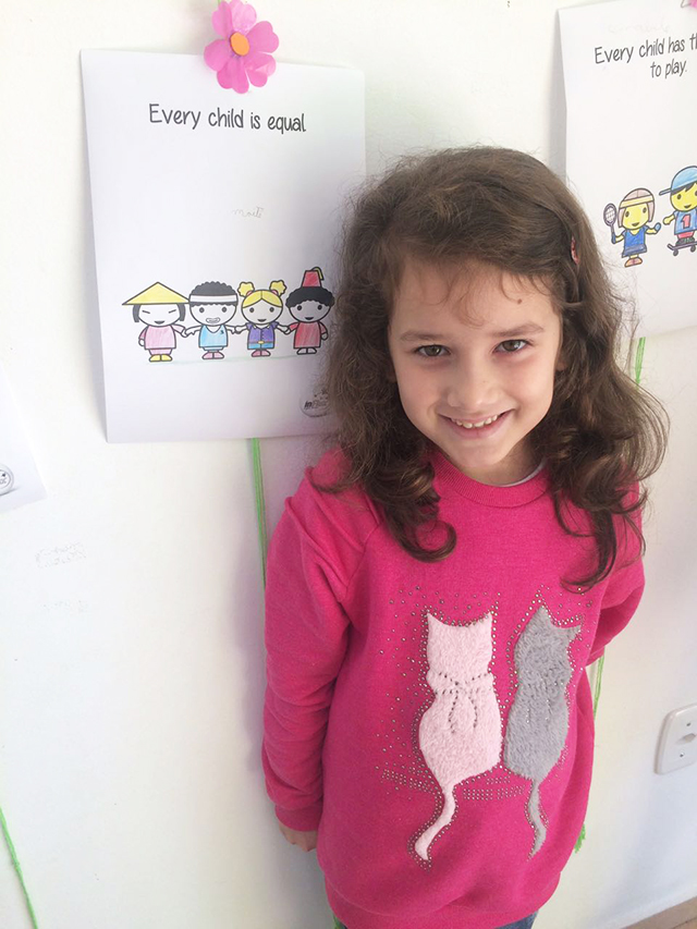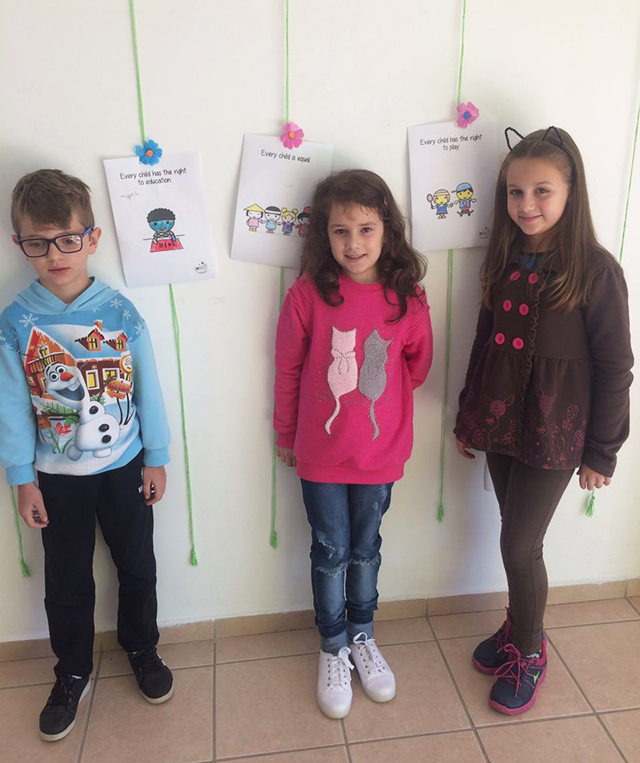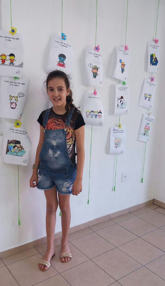 Os professores também levaram para sala desenhos para pintar relacionados aos direitos das crianças e praticaram algumas expressões.