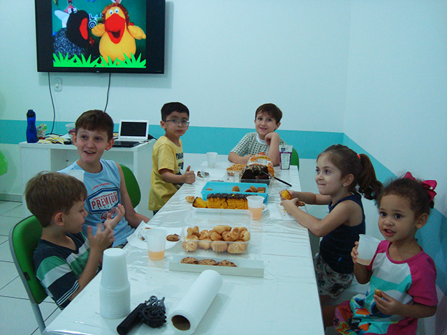 Nosso Dia das Crianças foi com muito aprendizado e diversão! As crianças aprenderam seus direitos, fizemos um lanche compartilhado delicioso, brincamos de bingo e depois assistimos ao filme ‘Sing’.