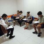 A última sexta-feira esteve agitada na escola. Além da Cooking Class de inglês, tivemos a atividade dos alunos de espanhol – a Clase concierto. Eles assistiram a cinco vídeos de variados cantores hispanohablantes e, ao término de cada vídeo, o maestro lia toda a canção para que eles aprendessem a pronúncia e praticassem a audição. Depois, cada aluno lia uma estrofe da canção, tirava as dúvidas em relação ao significado de algumas expressões, e, por fim, cantaram as canções acompanhando o maestro no violão. Confiram as fotos!