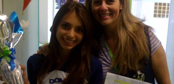 Melhor ainda, foi a Páscoa da aluna mais sortuda do mês que acertou o peso do Ovo Personalizado. Thacila Cita deu um palpite quase certeiro e levou pra casa um delicioso presente: Um chocolate que pesa exatas 346 gramas, sendo que ela chutou 347.