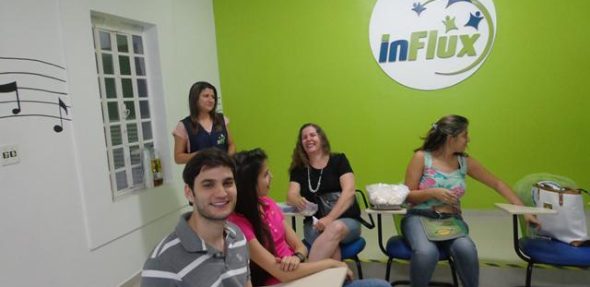 Na última sexta-feira dia 14, tivemos na inFlux Rio Preto um Conversation Day com vagas limitadas. Esteve lotado e foi um sucesso! O convidado estrangeiro foi James Reagan e sua esposa Graziela. Eles moram no estado de Luisiana, USA, em Monroe. Ele não fala nada de português e foi uma graça os pequenos de Backpacks, fazendo perguntas e ganhando brindes como, bandeirinhas, borrachas, bottons, etc. Perguntaram tudo sobre seu país, comida, hábitos, pets, lugares, diferenças entre os países, etc. O que eles não sabiam, perguntavam para as teachers ou para a diretora. Foi uma delícia, all ages, children, teens & adults participaram e amaram a última atividade extra do semestre! Thanks for coming folks and thanks to teachers and coordinators for the brillliant and enriching activity! Looking forward to the next one!