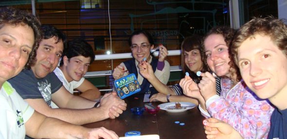 Na última sexta-feira, 27 de abril de 2012, os alunos da inFlux Florianópolis participaram de um Conversation Day no Dom Joaquim Bar e Café. Alunos de todos os níveis usaram a oportunidade para praticar seu inglês e fazer novos amigos. O grande destaque da noite foram os alunos do Book 1, que interagiram muito bem com alunos de níveis avançados, professores e até mesmo um americano que se juntou ao grupo. Além do bate-papo descontraído sobre diversos temas, os participantes puderam jogar um divertido jogo de “Verdade ou Mentira” (Truth or Fib) e testar suas capacidades de detectar quando os outros estavam mentindo. O aluno Arthur Marçal Flores não só ganhou o jogo (e o título de melhor detector de mentiras) como também ganhou o sorteio de uma caneca da inFlux. Outro tema de sucesso na noite foi Paul McCartney, que havia feito um show em Florianópolis na mesma semana. O professor Adriano levou sua coleção de discos de vinil dos Beatles e de Paul McCartney, objetos de raridade e desconhecidos de alunos da geração MP3. Depois de deliciosos lanches e um saboroso café, os alunos saíram do Dom Joaquim animados para continuar seus estudos, já que puderam ver o quanto conseguem se comunicar fora da sala de aula. Foi um sucesso.