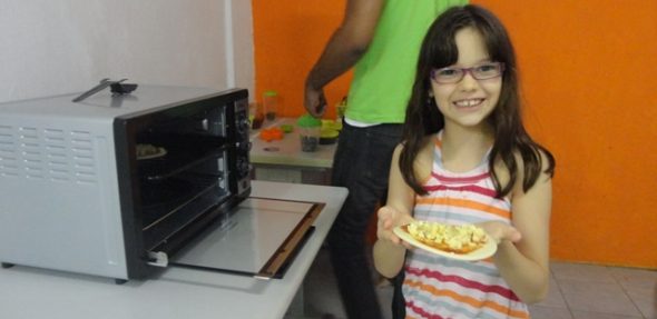 Logo de início, os alunos participaram de diversas atividades e brincadeiras. Após esse aquecimento, foi a hora de cozinhar. Cada aluno preparou a sua pizza, e os sabores criados foram bastante inusitados.