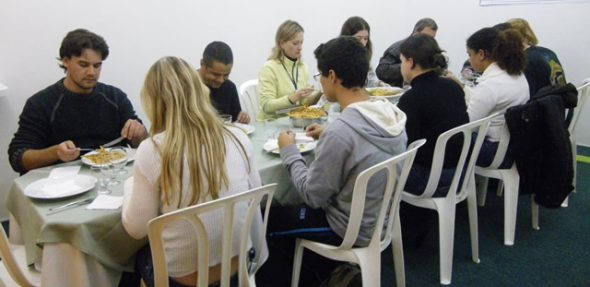 Depois de pronto, todos se reuniram para praticar o inglês e desfrutar de um sofisticado jantar com seus colegas!