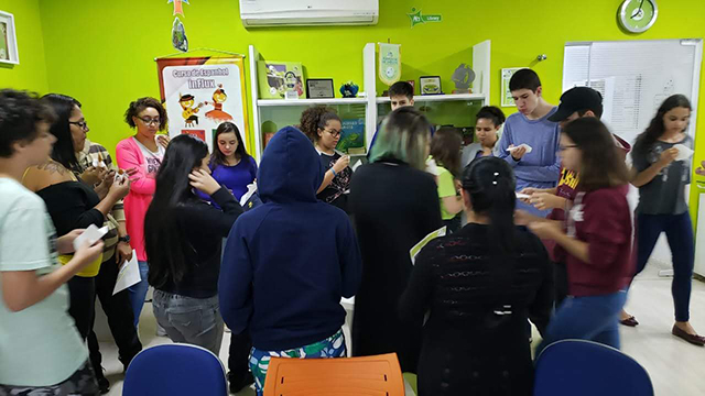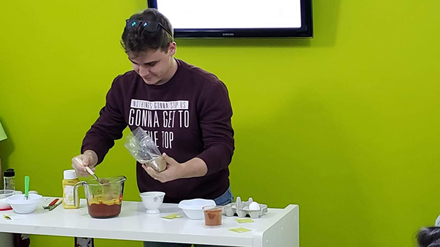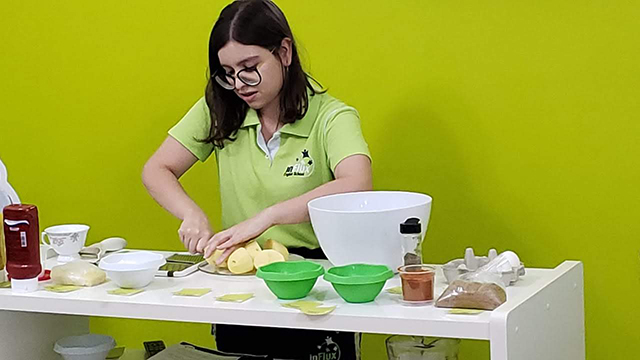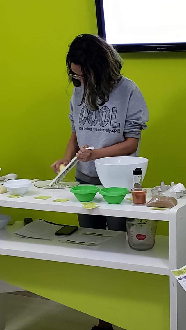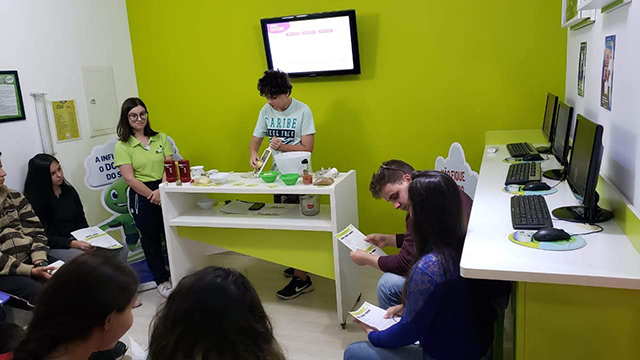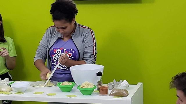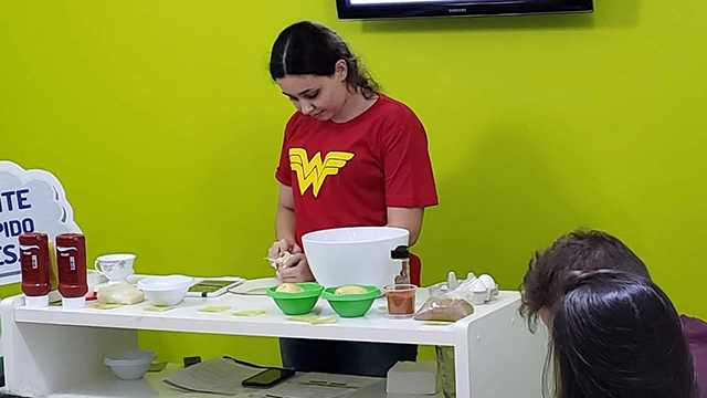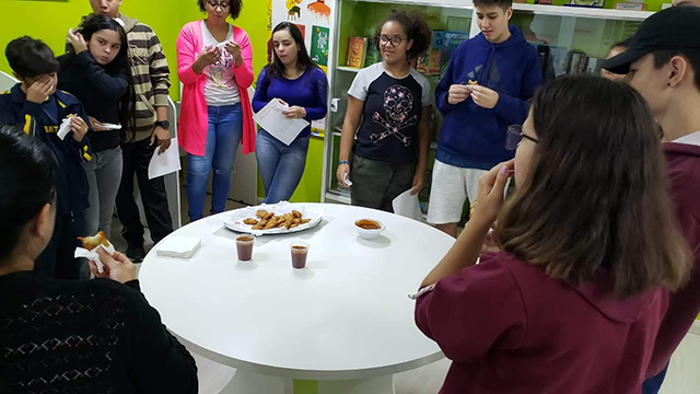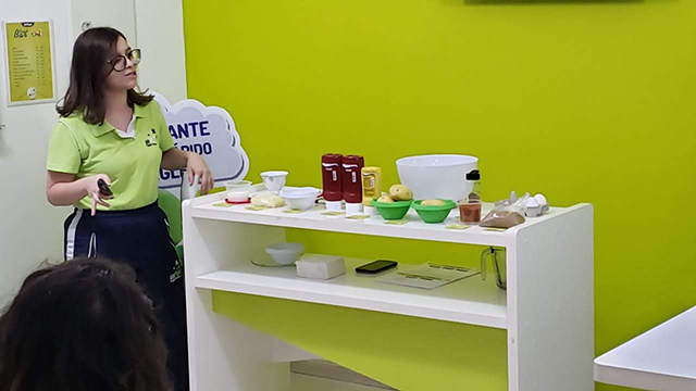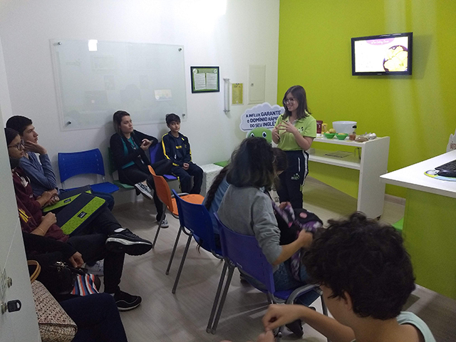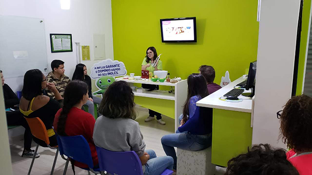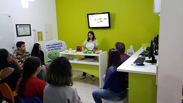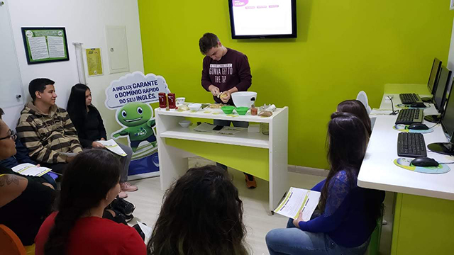 No dia 28 de fevereiro, foi realizado na unidade a atividade extra Cooking Class (aula de culinária). Nesta aula, foi ensinado como fazer um prato típico americano chamado Hash Browns, que são bolinhos fritos feitos com batata e queijo. Os participantes tinham a receita em uma mão e os ingredientes na outra, então ralaram batata, queijo, quebraram ovos e colocaram temperos para preparar o delicioso prato. Não apenas isso, eles também fizeram molho barbecue para acompanhar os bolinhos. Além do preparo, a turma descobriu mais sobre o café da manhã americano e participaram de um quiz com curiosidades sobre os costumes americanos em relação à comida e bebida.
