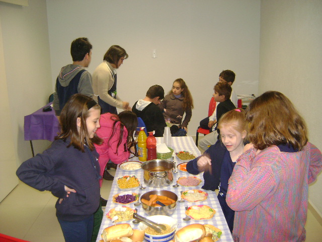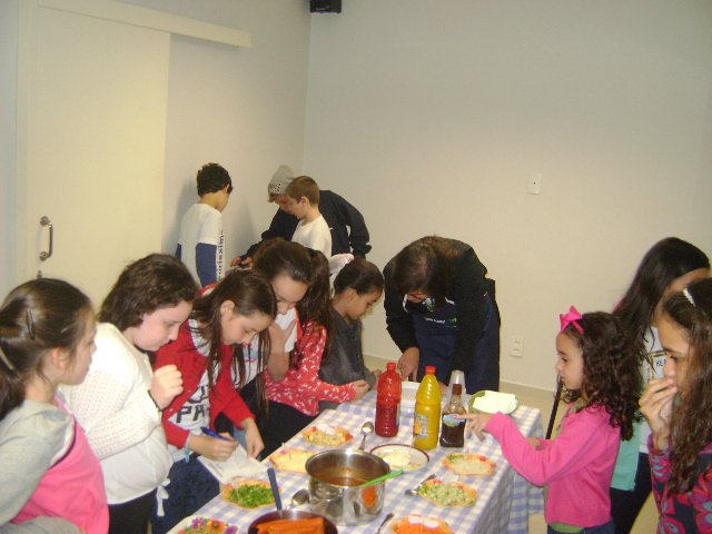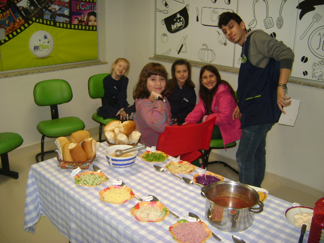 Nossos pequenos Chefs usaram toda a criatividade no concurso Master Chef Kids e todo o seu inglês também! E no final, claro … cada um montou seu próprio hot dog!