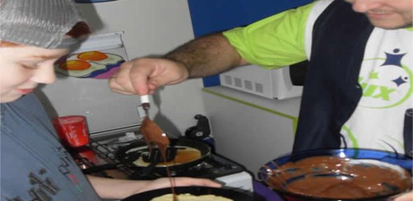 O ponto alto da aula foi atingido quando os alunos praticaram o tradicional giro da panqueca, com várias tentativas e erros, porém nada que impedisse a degustação do produto final. Segundo palavras do aluno Thiago: “Teacher, vou levar essa receita para tentar fazer em casa”. Já o aluno Ialos: “Essa foi a comida mais elaborada que eu já fiz”.