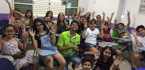 Foi uma experiência muito divertida, cheia gostosuras com muito sorvete pra acompanhar. Enquanto o Brownie assava no forno, os pequenos brincaram com um jogo chamado “Tornado“, na qual foram divididos em grupos e cada equipe tinha que responder perguntas em inglês sobre conteúdos aprendidos em sala de aula e assim pontuar para ser a equipe vencedora.