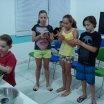 Tanto os adultos quanto as crianças aprenderam a fazer aqueles deliciosos cookies e se divertiram muito durante todo o processo de preparar a massa e moldar os cookies, praticando o inglês através dos ingredientes, modo de preparo e utensílios de culinária.