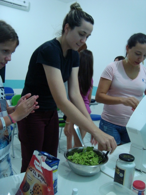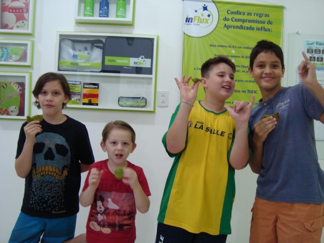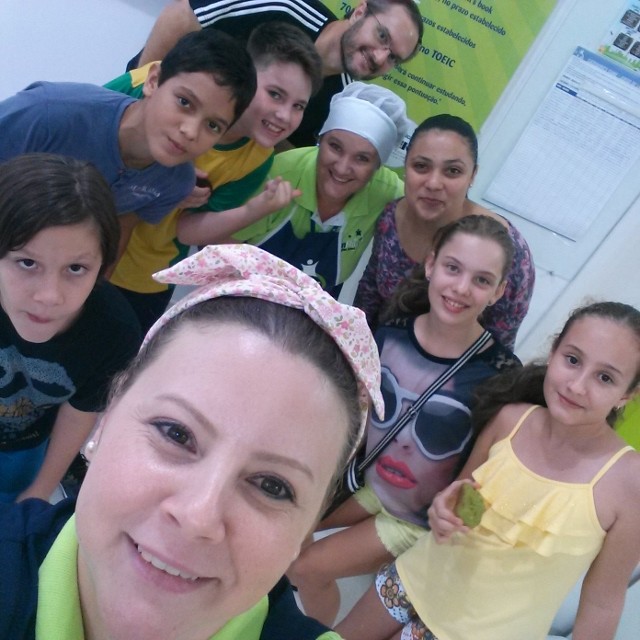 Tanto os adultos quanto as crianças aprenderam a fazer aqueles deliciosos cookies e se divertiram muito durante todo o processo de preparar a massa e moldar os cookies, praticando o inglês através dos ingredientes, modo de preparo e utensílios de culinária.